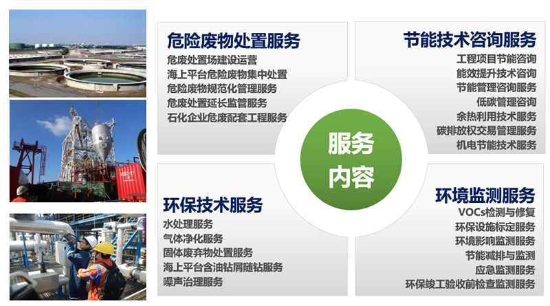 公司發展初期,主要依托中海油上中下游節能環保市場需求,布局危廢產業,打造國家示范級石化園區危險廢物處理處置配套工程。